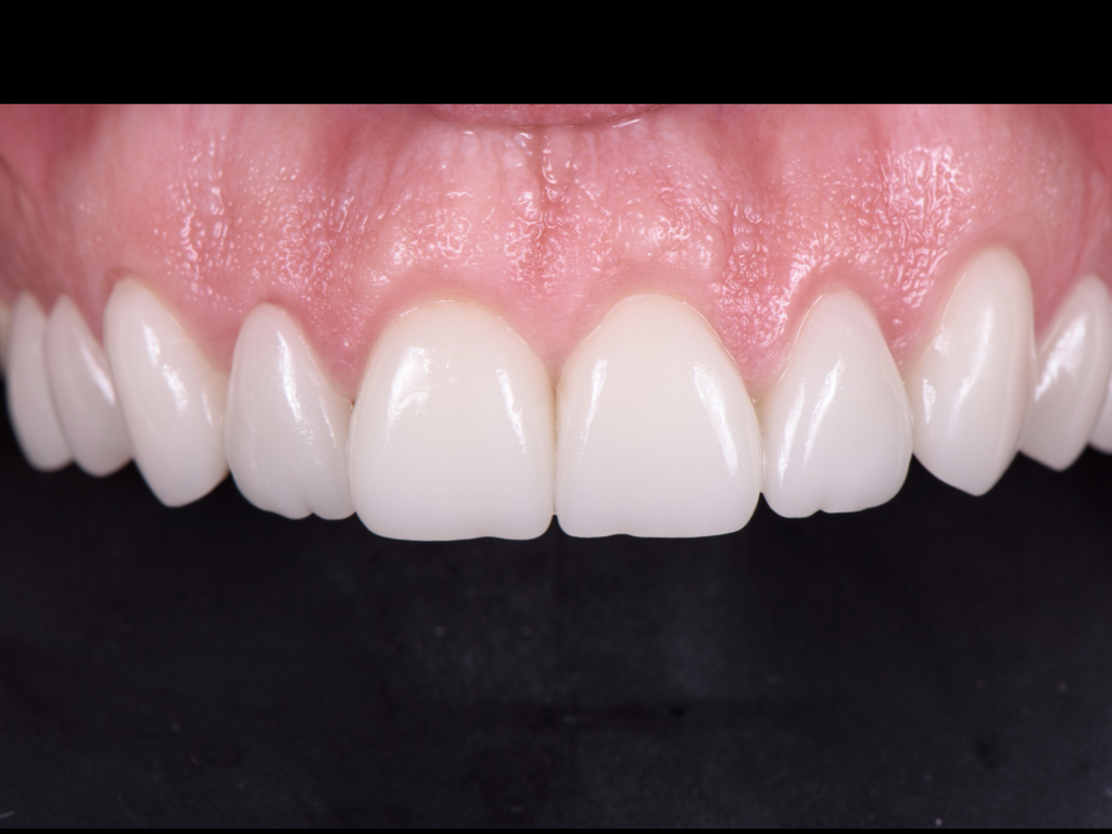 Así, una vez conseguido el diseño que nos gustaba, nos sirvió de guía para el recorte de encías. Posteriormente se colocaron unas carillas feldespáticas cad/cam.